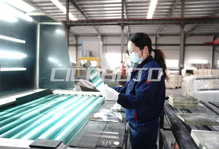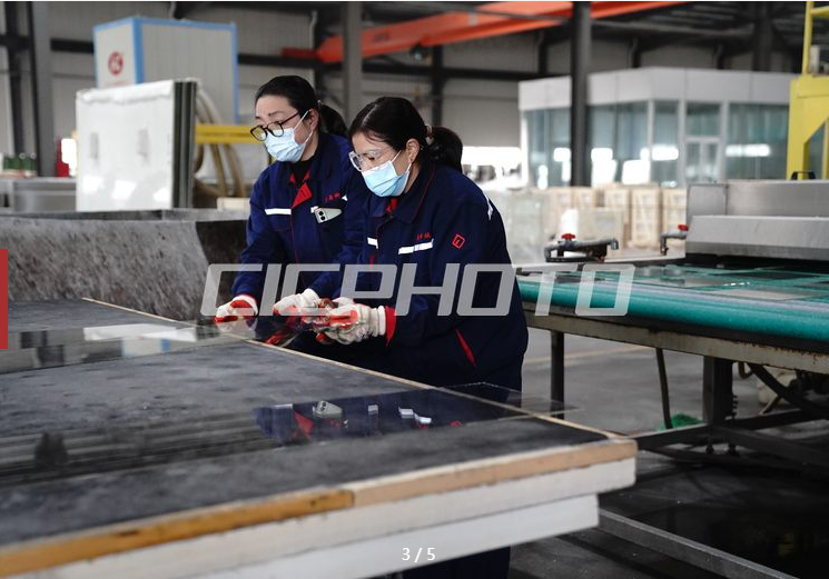 12月22日,河北富晶科技股份有限公司工人正在车间检验玻璃。
